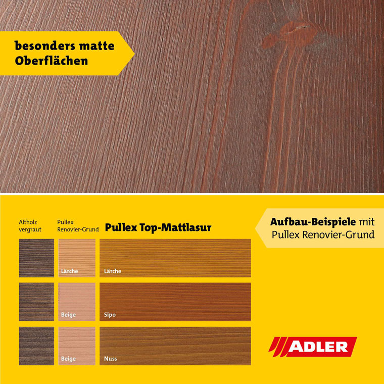 Pentru lucrări de renovare a suprafețelor din lemn, produsul poate fi utilizat împreună cu Pullex Renovier-Grund, oferind un sistem eficient pentru recondiționarea lemnului exterior.